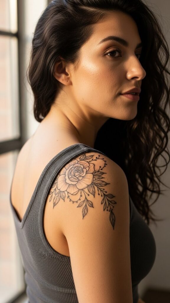 There’s something strong but calm about tattoos that sit right on the shoulder. They move when you move, and they always seem to belong there, no matter your body type. I especially love how they show up in tank tops and summer outfits without screaming for attention.