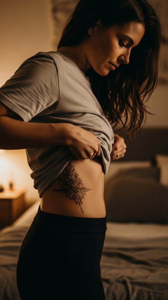 Not gonna lie, this one feels like a secret you only share when you choose to. Rib tattoos live in that space between private and powerful, like something you got just for you. I always think about this placement when I’m planning beach days, comfy house nights, or outfits that show just a hint of skin.