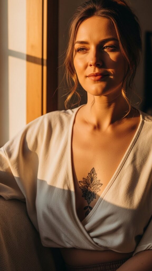 This placement always feels emotional to me like something you chose during a very specific chapter of your life. It’s close to the heart, mostly private, and changes how you see your own body in the mirror. It becomes part of getting dressed, part of choosing outfits, part of those quiet moments that only you really notice.