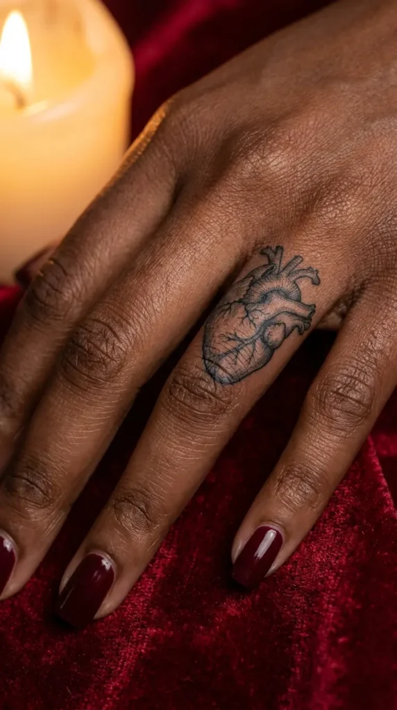 #12 Anatomical Heart Finger Tattoo