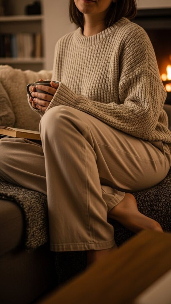Some days call for softness mentally and physically. A cozy knit sweater paired with relaxed pants feels comforting without looking sloppy. I love this for long days where I know I’ll be sitting, walking, and doing everything in between.