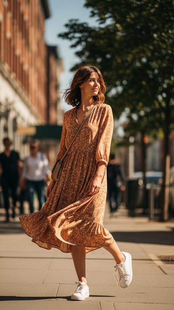 I always forget how easy dresses are until I actually wear one. A midi dress with sneakers feels low-effort but still cute, especially on days when pants feel like too much commitment. I love this for busy afternoons that turn into last-minute plans without warning.