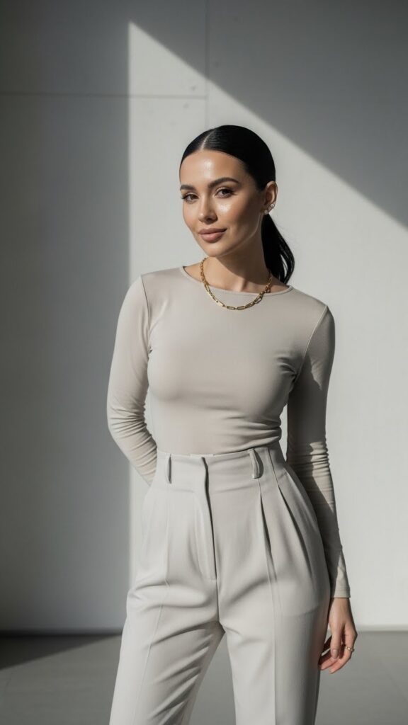 There’s something healing about simple outfits done right. Smooth fabrics, neutral tones, hair pulled back, skin breathing it feels like washing your face but for your whole life. I always reach for outfits like this when everything feels loud and I need my outside to feel quiet.