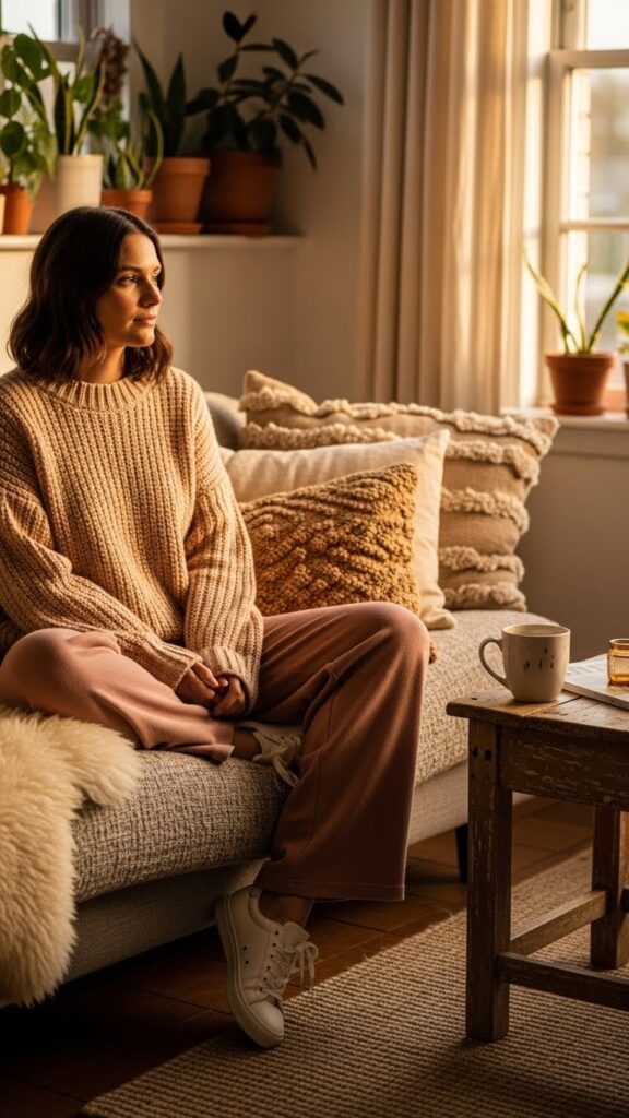 This is for those days when you want to be comfortable but not invisible. Like, soft fabric, relaxed fit, maybe something you could nap in but also something you wouldn’t panic about running into someone while wearing. I’m low-key obsessed with outfits like this for lazy Sundays, especially when the plan is “nothing,” but you still kind of want to look like a main character.