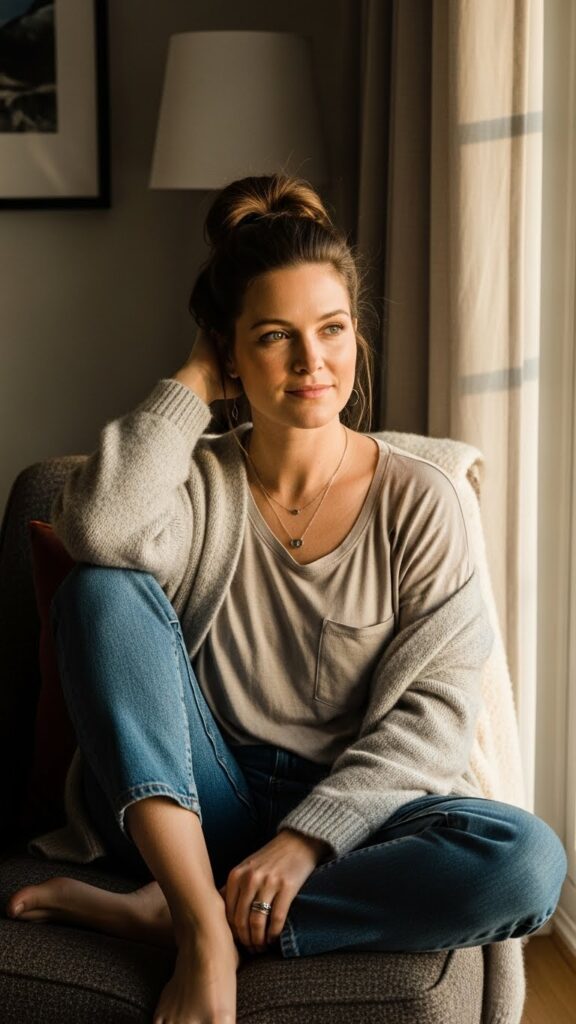 I didn’t expect to love this so much, but there’s something about soft layers that makes me feel instantly calmer, like my nervous system just took a deep breath. A loose tee, a lightweight cardigan, and jeans that don’t hate you back somehow turn into one of those outfits you keep choosing without thinking.