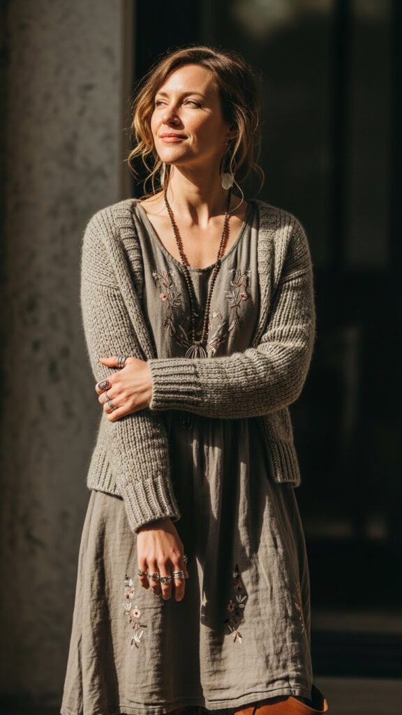 I gasped a little when I first put something like this together, not even going to lie. Flowy pieces, gentle colors, maybe something that moves when you walk it just feels romantic in a quiet way. Try outfits like this when you’re journaling, visiting a bookstore, or having one of those days where you want to feel tender but still strong.