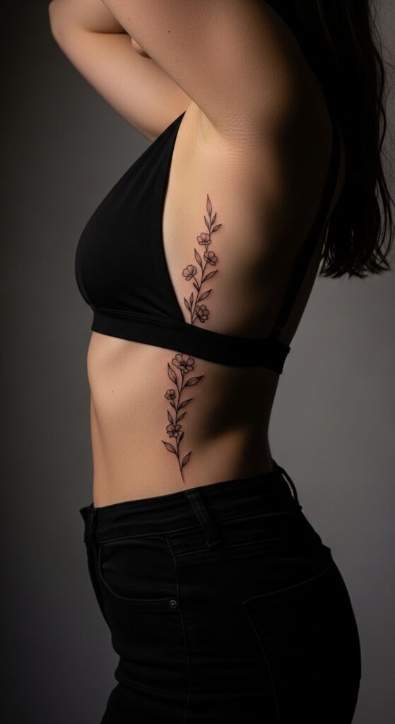Side ribcage tattoos offer a private canvas that works beautifully for larger, more elaborate designs. This placement is universally flattering because it follows the natural lines of the torso, and designs here can be sized to complement your specific proportions.